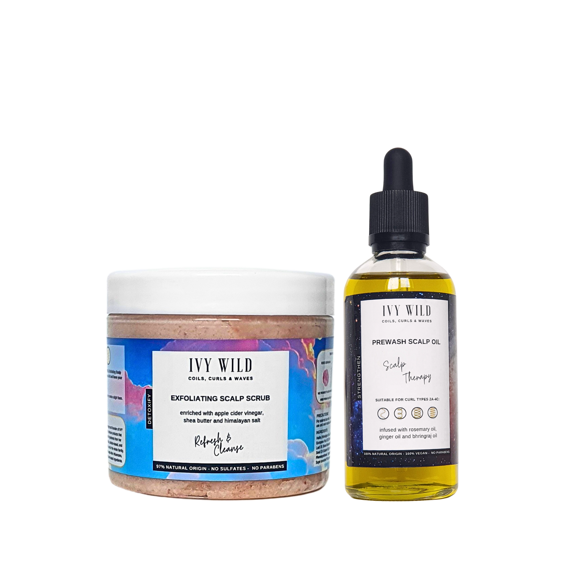 An exfoliating scalp scrub and soothing scalp oil.